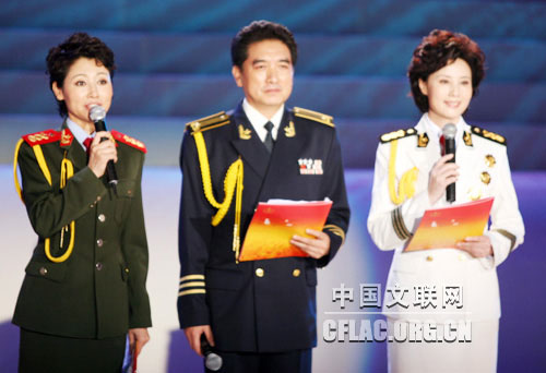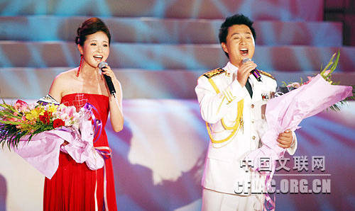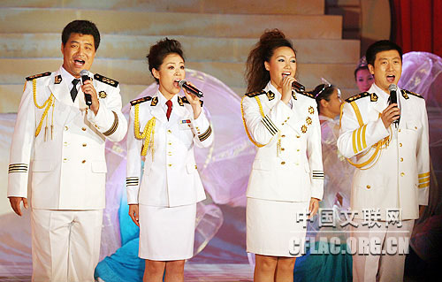 姜必群、甘露露、郑洁和汤俊(由左至右)演唱歌曲《我爱这蓝色的海洋》
