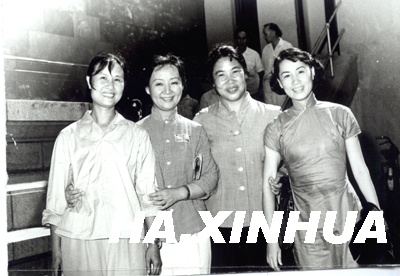 1964年中南调演与红线女(右一)陈伯华(左二)尹儀合影。