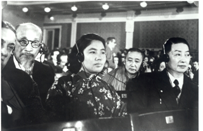 梅兰芳(右)常香玉在维也纳会议上。