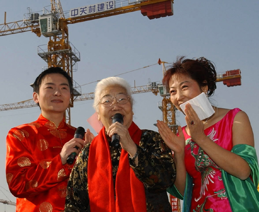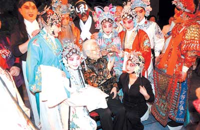 常香玉与女儿在向戏迷致意。