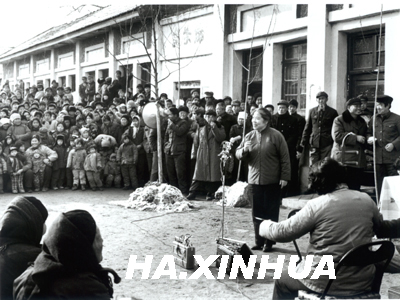 1978年正月初一在郑州郊区南曹公社八里岗大队为社员演出。