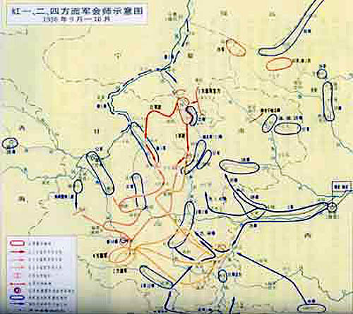 红一、二、四方面军会师示意图(1936年9月-10月)