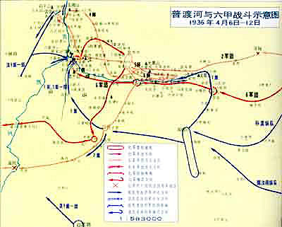 普渡河与六甲战斗示意图(1936年4月6日—12日)