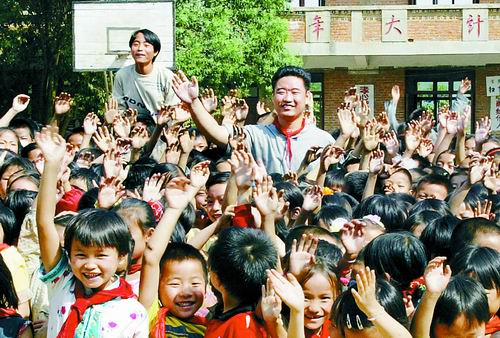 去年,丛飞前往贵州织金县捐资助学,翻山越岭,挨家挨户地探望贫困家庭,并到学校去看望他资助的孩子们。显然,丛飞和孩子们之间早已建立了深厚的感情,热烈的场面令人十分感动。
