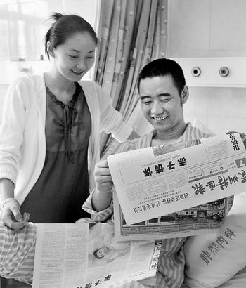 丛飞认真阅读长篇通讯《赤子情怀》,他非常激动地告诉记者,他喜欢“赤子”这两个字,他说:“我是人民的儿子,为人民做好事是应该的。感谢党和人民给我这么高的荣誉。今后我还要继续为人民服务。”
