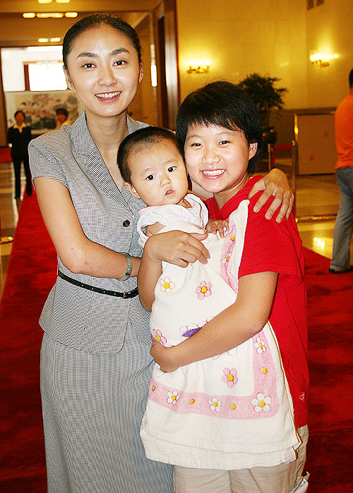 丛飞妻子邢丹、贵州织金县学生晏语轻轻和丛飞女儿