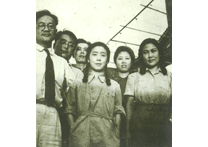 1957年巴金在摄影现场与《家》摄制组人员合影