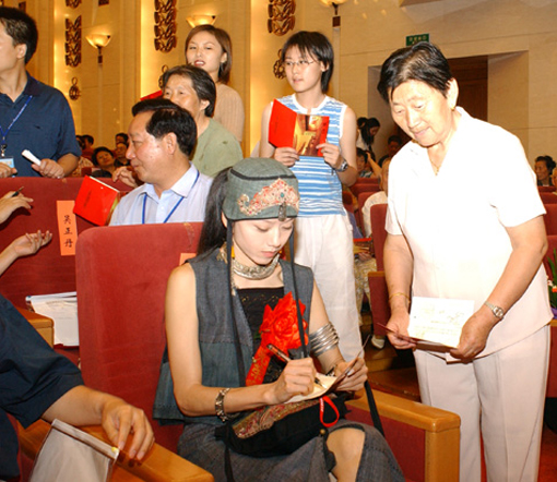 杨丽萍在给观众签名