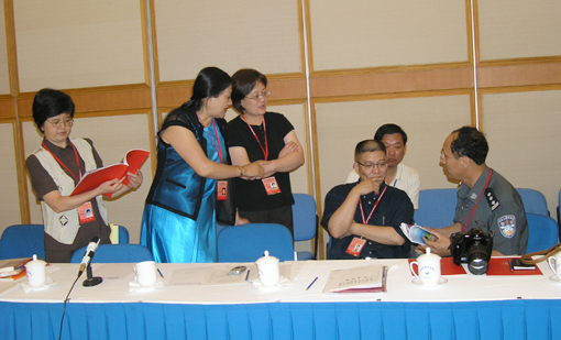 代表们在亲切切磋。