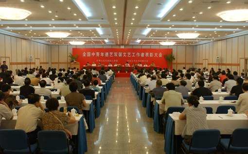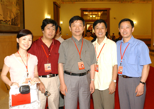 吉炳轩、李树文、覃志刚、仲呈祥等与张鲁交谈。