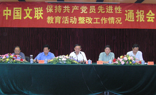 中国文联保持共产党员先进性教育活动整改情况通报会主席台。