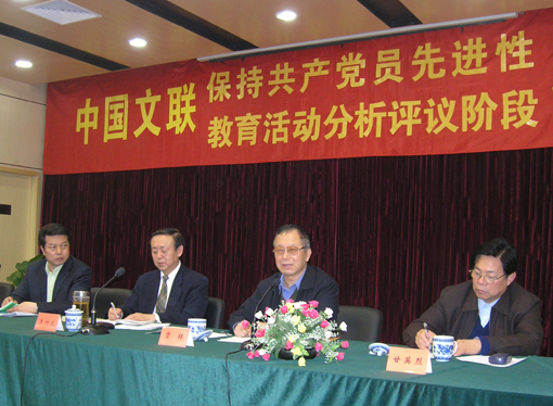 中国文联保持共产党员先进性教育活动整改情况通报会主席台。