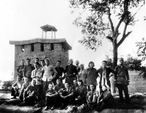 1944年5月在房、涞、涿政治攻势中,胡可(后排左四)与演剧队员合影