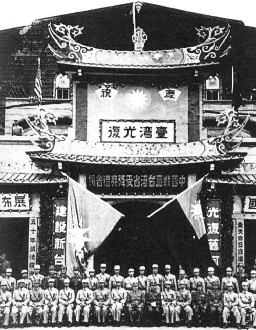 台湾省受降用接收仪式后,中国受降代表在台北市中山堂前留影