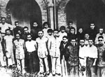 邓颖超(前排左一)与部分孩子剧团成员在武汉八路军办事处门前合影