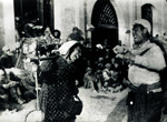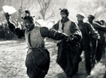 1943年,刘炽(左一)在扭秧歌