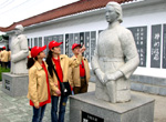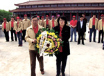 采访采风团团长顺强(左)、李树声向抗日烈士敬献花圈