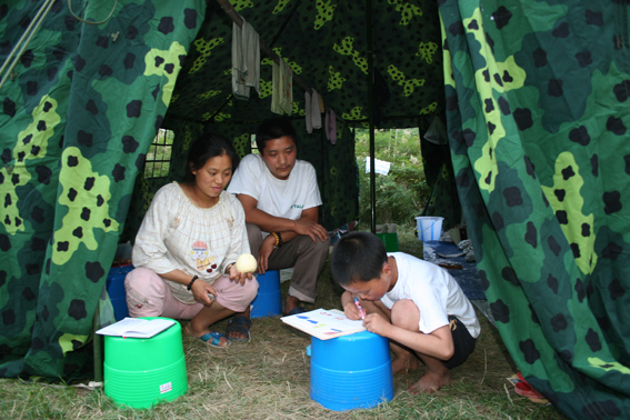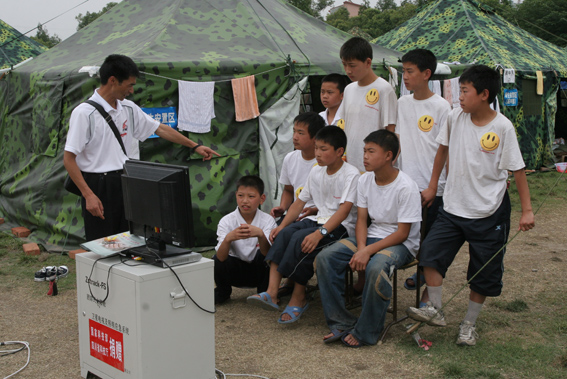 |  | | | 让我们一起加油! | | | |  | | | 抗震棚下的娱乐学习 | | | |  | | | 临时病房和临时电视台 | | |