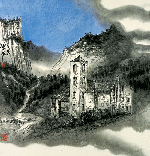 陈平 安道尔山脉风光 90cm×90cm 2007年 纸本