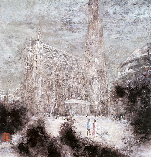 赵新平 奥地利斯特凡教堂 90cm×90cm 2007年 纸本