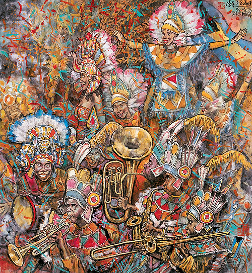 赵俊生 巴哈马 贾卡努狂欢节 90cm×90cm 2007年 纸本