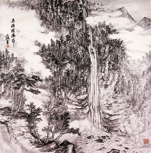 丘挺 马拉维 谦比瀑布与马拉维湖 90cm×90cm 2007年 纸本