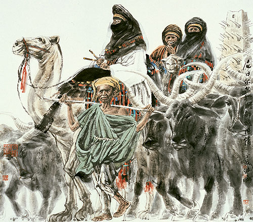 冯远 尼日尔共和国部族风情 90cm×90cm 2007年 纸本