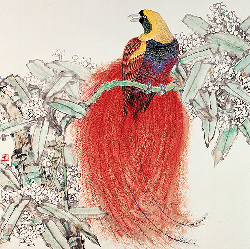 彭先诚 巴布亚新几内亚 天堂鸟 90cm×90cm 2007年 纸本