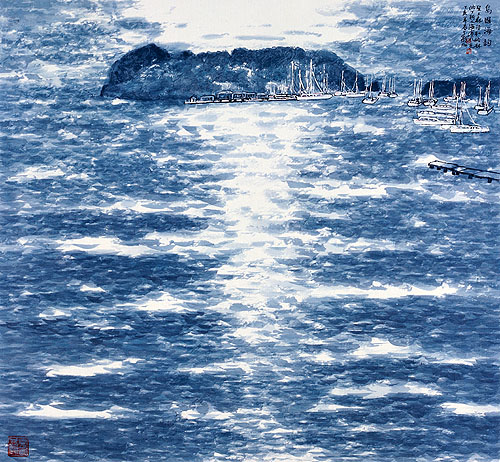 丁观加 圣文森特和格林纳丁斯 海滨风光 90cm×90cm 2007年 纸本