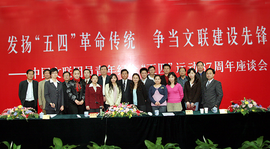 中国文联党组领导与各单位团组织负责人和获奖者合影。
