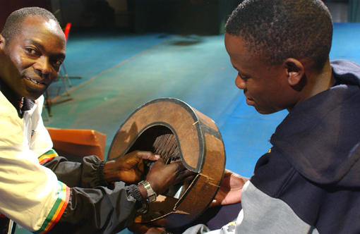 “拇指钢琴”是津巴布韦所独有的民族乐器。在木制的圆形音箱里,有一排金属制的铜条,由于铜条的长短不一,因此演奏出来的音高也不相同。演奏时,将双手插入音箱内,用左手的拇指和右手的拇指、食指进行拨奏。据说,由这种乐器所演奏出来的音乐不仅能够赶走病人身上的邪气,还能起到祈雨的作用,因此在津巴布韦它是备受人们喜爱的乐器之一。