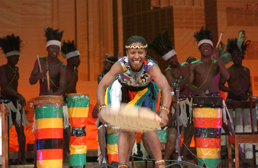 10月17日晚,津巴布韦艺术家在山西晋中演出。