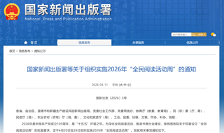 《国家新闻出版署等关于组织实施2026年“全民阅读活动周”的通知》近日印发,15家单位将于4月20日至26日组织实施2026年“全民阅读活动周”。