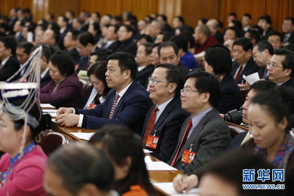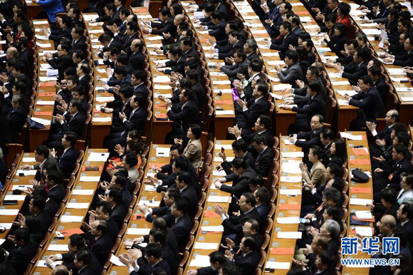 3月13日,第十二届全国人民代表大会第二次会议在北京人民大会堂举行闭幕会。这是代表在会上鼓掌。 新华社记者王鹏摄
