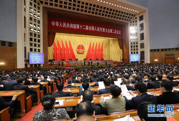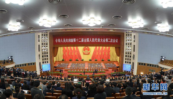 3月13日,第十二届全国人民代表大会第二次会议在北京人民大会堂举行闭幕会。 新华社记者王建华摄
