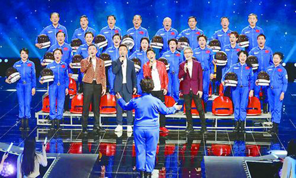 在节目《好运好运接》中,伯远、李子璇、许佳琪、郑业成巧用姓名谐音祝福听众好运,小央机器人家族伴舞,各行各业网络达人火力全开。康辉、撒贝宁、朱广权、尼格买提承接了“超时空出差”的任务,在AI图绘的神话故事与科技想象背景中,与航天老同志合唱团携手,以一曲交织科技语汇的《月亮船》唱出中国航天人追逐梦想、勇于探索的精神。陈瑶、傅菁、李梦、张艺凡在AR、AI技术的助力下化身“笔墨纸砚”,共同展现《纸砚山河笔墨春秋》的古色古香情境。