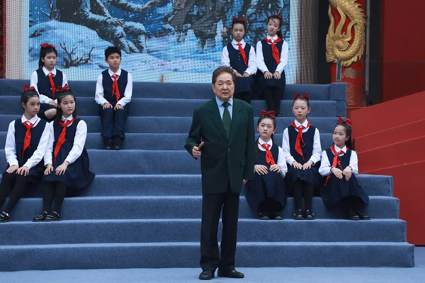 “大雪很快覆盖了军需处长的身体,他变成了一座晶莹的丰碑。将军什么话也没有说,大步地走进了漫天的风雪之中。他听见无数沉重而又坚定的脚步声,那声音似乎在告诉人们:如果胜利不属于这样的队伍,还会属于谁呢?”4月20日,在“书香江右 艺读长征——第五届全民阅读大会·中国文联红色经典诵读会”上,瞿弦和与来自南昌市青少年宫、江西广电小记者团的数十名少年儿童一同登上舞台,深情朗诵了李本深的经典作品《丰碑》,将长征路上的赤诚与奉献娓娓道来。