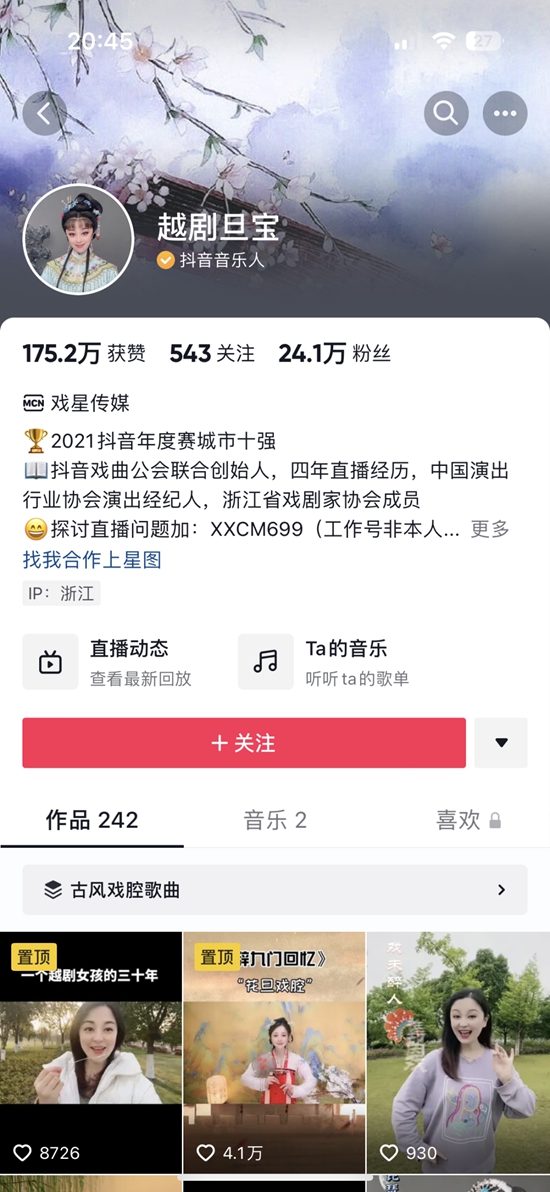 除此之外,网络直播也为戏曲的推广创造了机遇,越来越多的青年戏曲人通过直播,呈现自己对艺术的理解、诠释,开拓了戏曲表演的舞台类型……