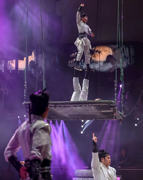 该节目突破传统杂技表演侧重技巧展示的模式,将中国古典武侠文化的精神内核与美学风格深度融入“跳板”与“蹦床”两项极具动感和视觉冲击力的杂技形式中,赢得现场观众的热烈掌声。