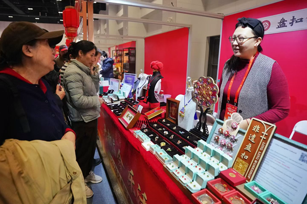 The China-chic Intangible Cultural Heritage Area was a standout attraction at this indoor fair, as it consistently has been at outdoor fairs across various venues in Beijing. The "Beijing Skilled Women" section was particularly noteworthy, featuring an array of skills, such as Chinese traditional knotted buttons (or frog buttons), embroidery from ethnic groups, cloisonne-making techniques, traditional Chinese incense-making and tie-dyeing.