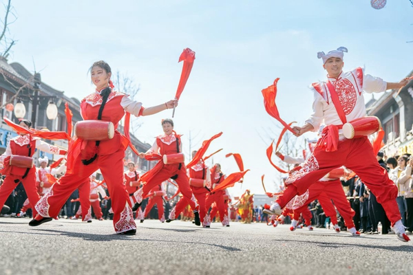 Drummers give a lively show on the streets of Zhengding county in Shijiazhuang, Hebei province, on March 15, 2026. [Photo by Wu Zhiwei/For chinadaily.com.cn]