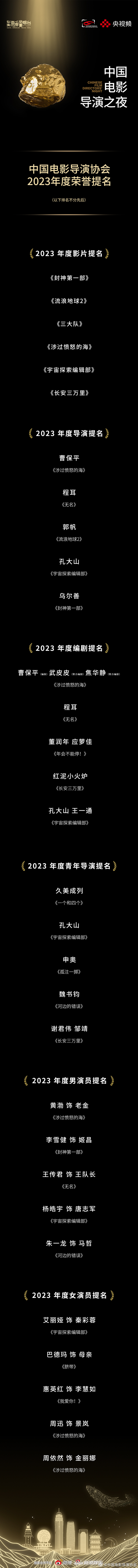 中国电影导演协会2020-2023年度荣誉提名名单揭晓