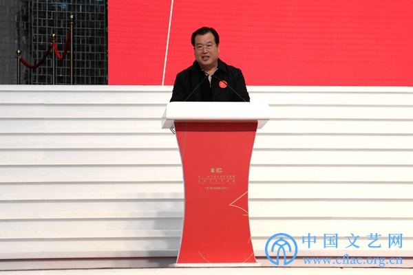 10月10日,“第十三届全国美展实验艺术作品展”在廊坊开幕。图为新奥集团董事局主席王玉锁在开幕式上致辞。 中国文艺网 高森 摄