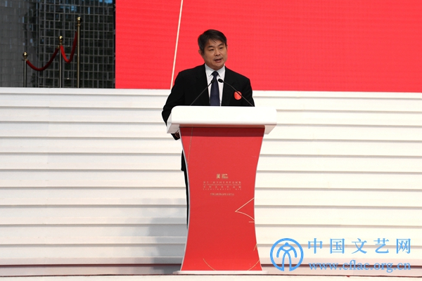 10月10日,“第十三届全国美展实验艺术作品展”在廊坊开幕。图为第十三届全国美展组委会副主任、文化和旅游部艺术司司长诸迪在开幕式上致辞。 中国文艺网 高森 摄
