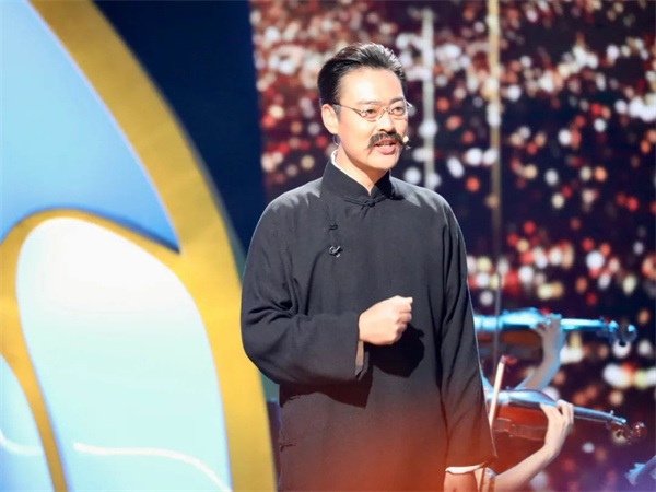 11月4日,第14届中国金鹰电视艺术节开幕式暨文艺晚会在湖南省长沙市举行。图为王雷、李小萌讲述《金色时光》。