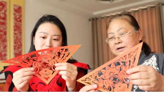 母亲是土生土长的剪纸传承人,指尖攥着老一辈传下的技艺,对每一个纹样的寓意都如数家珍,她代表着新大众文艺深植于民间文化基因的“根”;女儿则带着现代设计视角,擅长用新材料、新手法为传统技艺注入活力,她代表着新大众文艺立足当下向新而行的“翼”。传承者守住文化根脉,创新者拓展表达边界,二者合力,让文化焕发全新光彩。