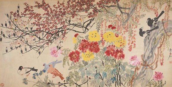 百花与和平鸽(中国画) 1952年 齐白石 中国人民对外友好协会藏 图片由主办方提供