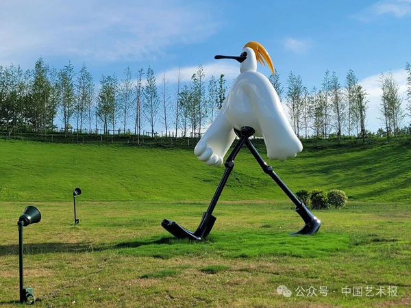 “共生”里有对美好生活的向往。在水彩画《诗和远方》里,近景中骑着摩托车的青年骑手与远处一对骑着自行车的老夫妇形成对比,他们追求浪漫的方式不同,但共同体现出对美好生活的热爱。“共生”里有对人与自然和谐共生的期许。表现冬捕的雕塑《冬日渔趣》还原了渔民质朴勤劳的形象和丰收喜悦,展现出人与自然和谐相处的生态文明发展理念。“家园”系列是关注生存环境、倡导人文精神的雕塑,作品以鹿代表东方文化精神,既通灵又高贵,既相对独立又具有群体意识,艺术家借鹿表达对未来的美好期望。在介绍自己的作品《从冰川深处到天空》时,瑞士艺术家伯纳德·加罗说:“这幅作品采用我在悬崖、冰川之下和火山口采集的自然物质创作而成,因此,画作的‘表皮’是承载着百万年记忆的真实自然。瑞士冰川保存着五万年前人类活动的印记,记录着气候历史与人类自身的故事,如今却因气候变暖而急剧消融,若现状不变,中欧冰川将无法挺过21世纪,导致欧洲饮用水短缺、海平面上升等严重后果。艺术在此过程中扮演关键角色:揭示正在消逝的美,唤起环保意识并与科学对话。”