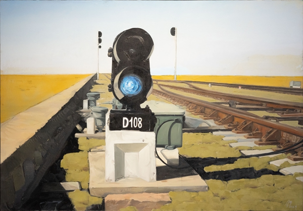 画界流传有一句话:“不管你画什么,关键在于你怎么画。”意思是形式风格要重要于内容题材。事实上,“画什么”和“怎么画”都有重要意义。艺术家梁宇以铁路作为题材,经过选择与提炼,把戏剧化的某种天职责任,以及经历孤独痛苦和心灵净化的坦诚融入其中,显露出其作品独特的气质。他的信号灯系列、车站系列、火车系列、红房子系列、道口系列、克拉玛依系列、准格尔系列等主题作品,要么是直接描绘铁路的风景,要么是铁路衍生出来的风景,这些风景紧密地互相联系。艺术家选择题材的动机往往和个人经历、教育经历、理想追求以及时代条件等方面有关系。对某一题材的持续性的创作研究,不仅是艺术家深入进行艺术语言的锤炼过程,也是不断进行自我精神探索过程,更是创造自我的路径。