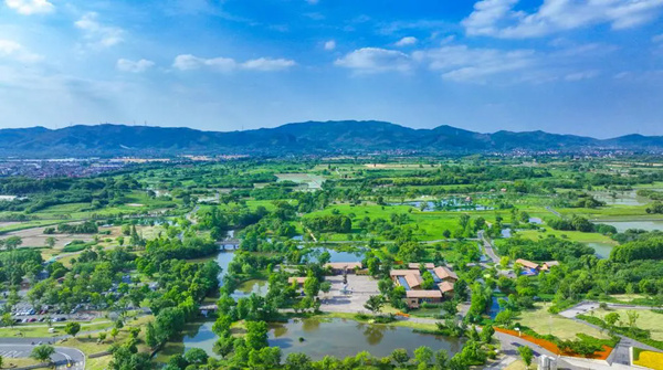 良渚古城遗址公园航拍全景。图源:央广网